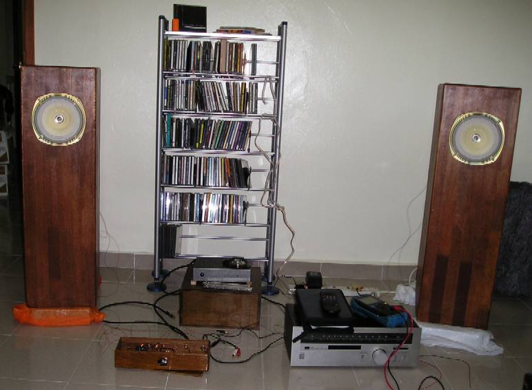 After a few moving sales, I learned to appreciate the value of simplicity, the value of minimalism. Now, not just "less in more" in circuitry terms, but also, "smaller is bigger". See above. CDPRO2 SPDIF output feeding "3-some" ( Monica2 and Charlize in gorgeous teak wood) driving a pair of Coral Flat 6s.