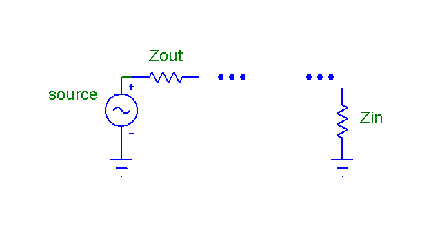 So, say Zin is many times larger than Zout, then the signal seen is almost all of the signal. But if Zin is not larger than Zout by much, then we have a problem. There will be much signal loss here. To make matters worse, Z is kind of frequency dependent and such a problem is audible! Say you built a tube preamp with an output impedance of 10kohm. When driving a 50kohm load, that's a terrible Z ratio of 1/6! This combo will be weak in bass. Got no rhythm, brudder. And I heard such a case before!