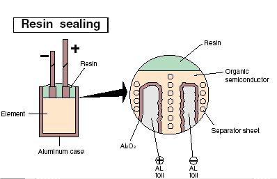 electrolytics is that organic semiconductor crystal is impregnated instead of